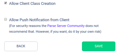 Allow class creation: You enable the user to create a new class in the database without the administrator permission. In this case, you have to be careful with the users that you permit to do this because they can change things that will compromise the best operation of your app.