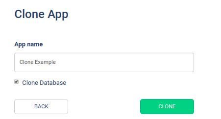 You use this option to create a new app with the same database of the app that you are working.To do this, you click in the blank to give a name to your new app, click on the box bellow the empty to clone the database